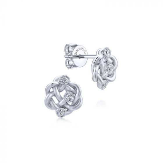 925 Sterling Silver Twisted Knot Diamond Stud Earrings