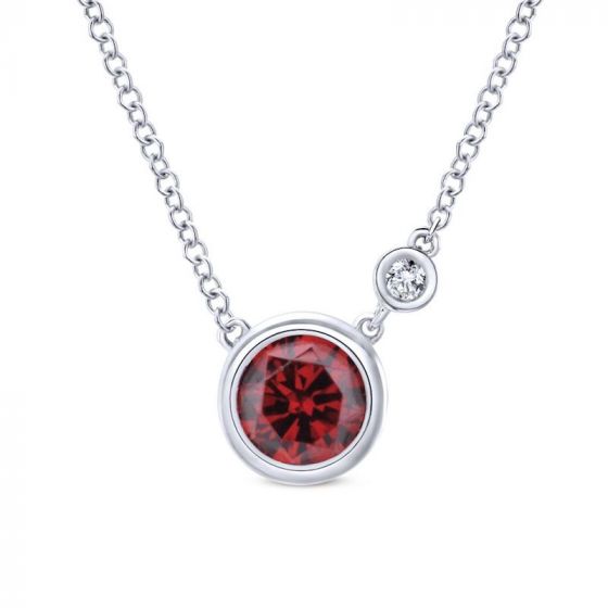 927 Sterling Silver Bezel Set Garnet and Diamond Necklace