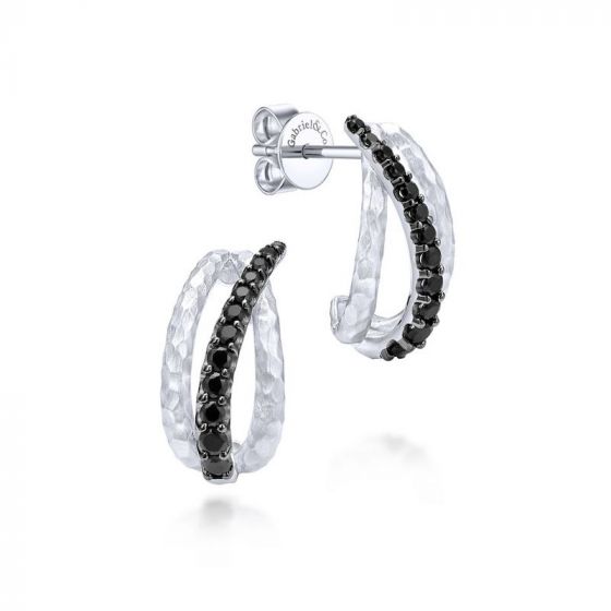 925 Sterling Silver Black Spinel Curved Drop Earrings