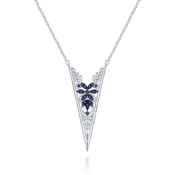 925 Sterling Silver Sapphire Openwork Floral Pendant Necklace
