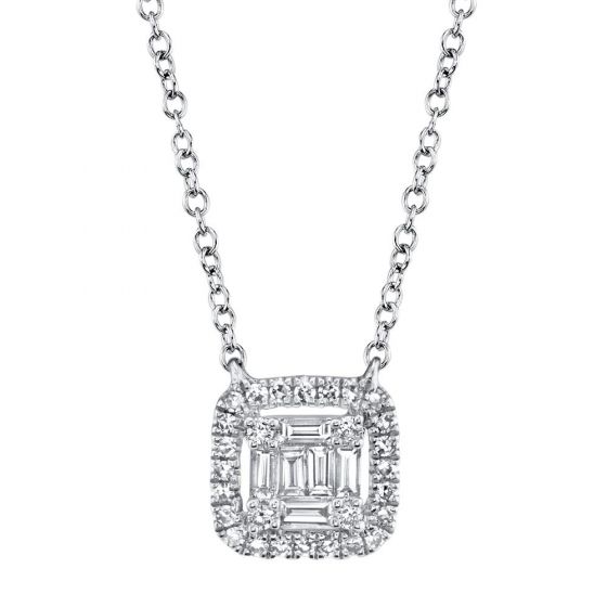 0.22CT 14K W/G DIAMOND BAGUETTE NECKLACE