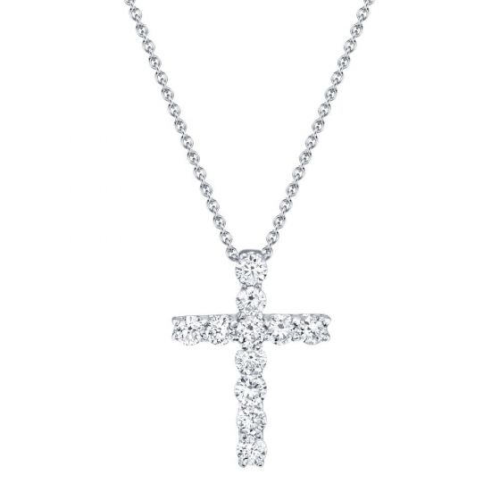 Shy Creation 14k Gold White 0.32Ct Diamond Cross Necklace