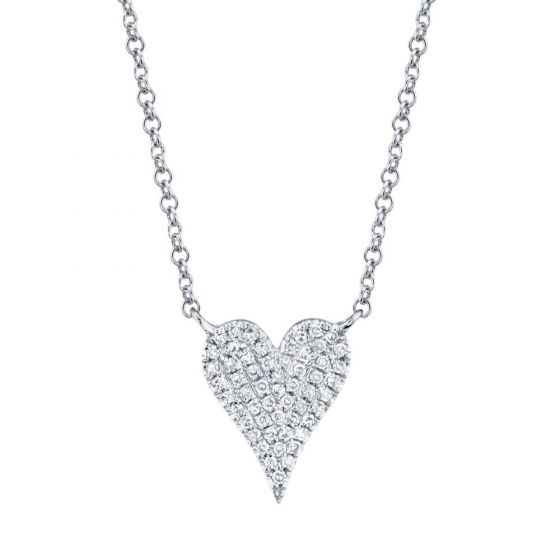 Shy Creation 14k Gold White Amor 0.11 ct. Diamond Pave Heart Pendant Necklace - Small