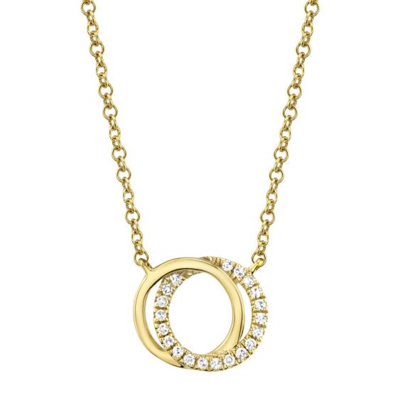 Shy Creation 14k Gold Yellow 0.07Ct Diamond Love Knot Circle Pendant Necklace