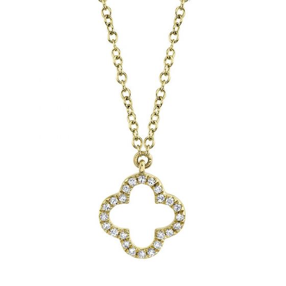 Shy Creation 14k Gold Yellow 0.08Ct Diamond Clover Necklace