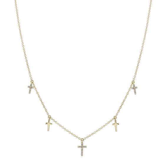 Shy Creation 14k Gold Yellow 0.09Ct Diamond Cross Necklace