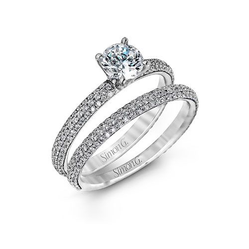 Simon G. 18k White Gold Diamond Engagement Ring and Wedding Band Set