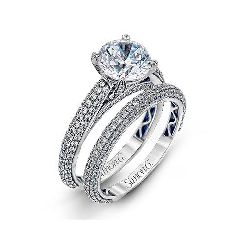 Simon G. 18k White Gold Diamond Engagement Ring and Wedding Band Set