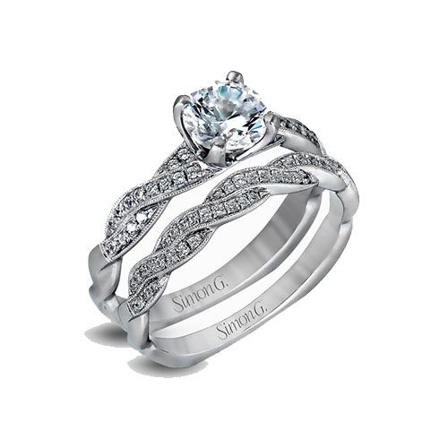 Simon G. 18k White Gold Engagement Ring and Wedding Band Set
