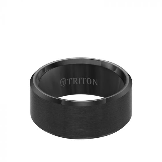 Triton 10MM Tungsten Carbide Ring - Satin Center and Bevel Edge