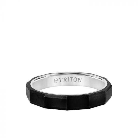 Triton 4MM Tungsten Carbide + 14K Gold Ring - Faceted Pattern 14K Gold Interior