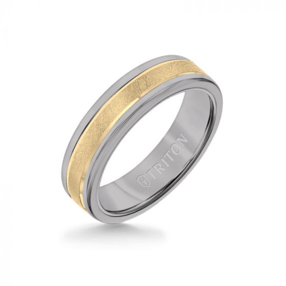 Triton 6MM Grey Tungsten Carbide Ring - Crystalline 14K Yellow Gold Insert with Round Edge