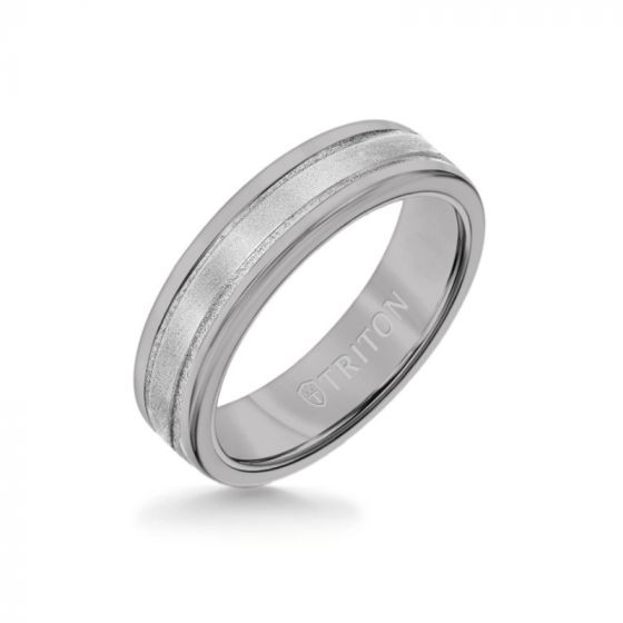 Triton 6MM Grey Tungsten Carbide Ring - Step Edge 14K White Gold Insert with Round Edge