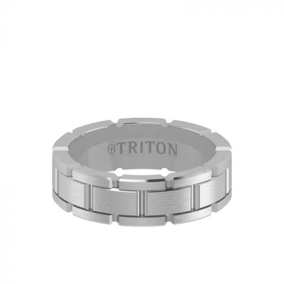 Triton 7MM 14K Gold Ring - Satin Finish Link Design and Flat Edge