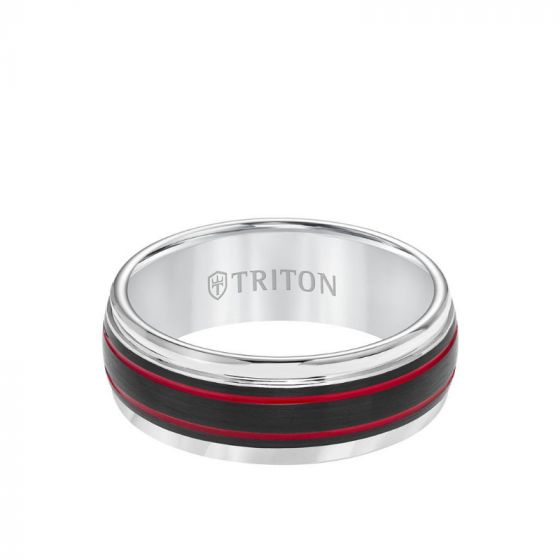 Triton 8MM Tungsten Carbide Ring - Black Matte Center Stripe and Bevel Edge