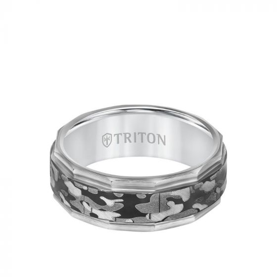 Triton 8MM Tungsten Carbide Ring - Camo Pattern and Faceted Edge