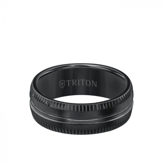 Triton 8MM Tungsten Carbide Ring - Horizontal Center Lines and Coin Edge