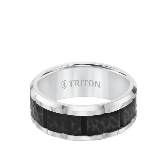 Triton 9MM Tungsten Carbide Ring - Black Sandblasted Center and Bevel Edge