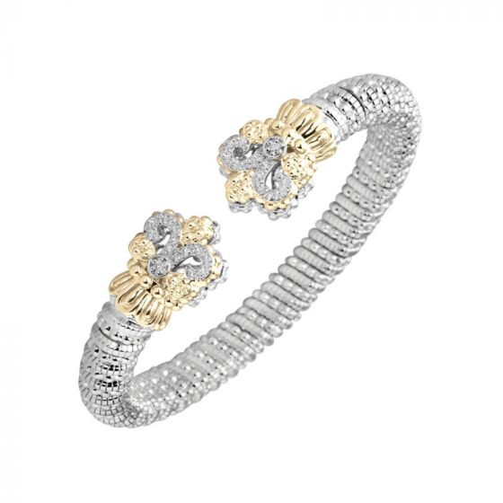 Stunning Sterling Silver And 14K Gold Bracelet With .26Ctw Diamonds, Fleur De Lis Design